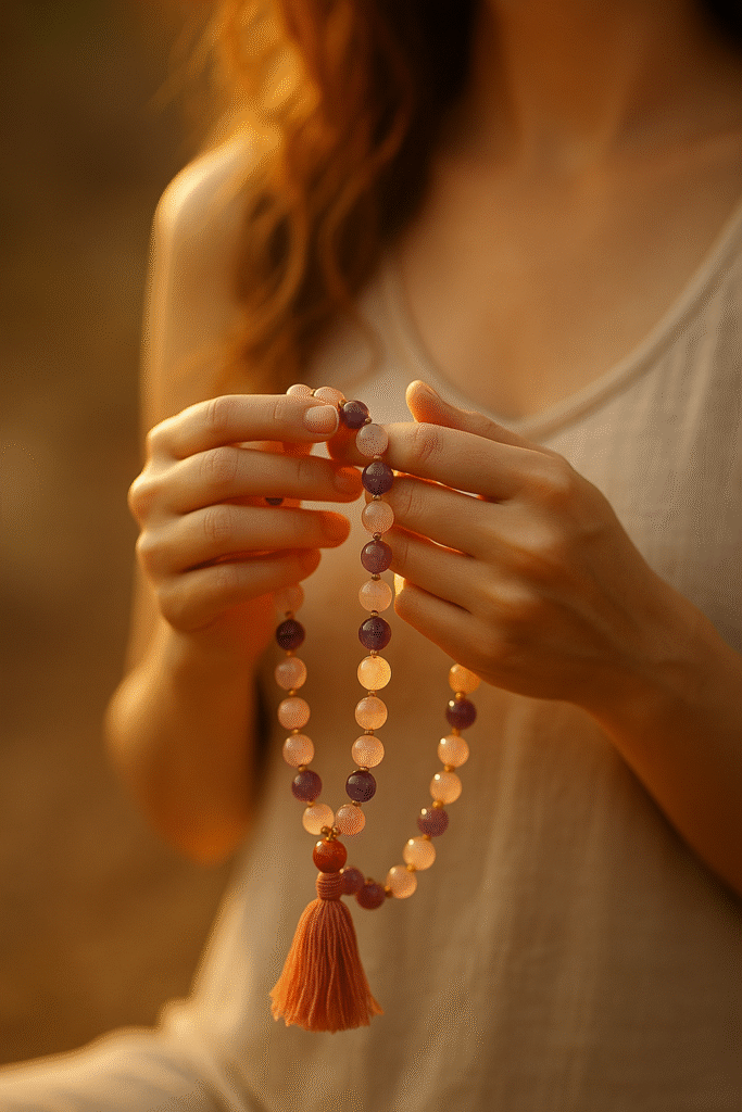 Se você deseja começar essa prática, recomendo um Japamala de cristais, pois cada pedra vibra em sintonia com um propósito específico (amor, proteção, prosperidade, intuição…).